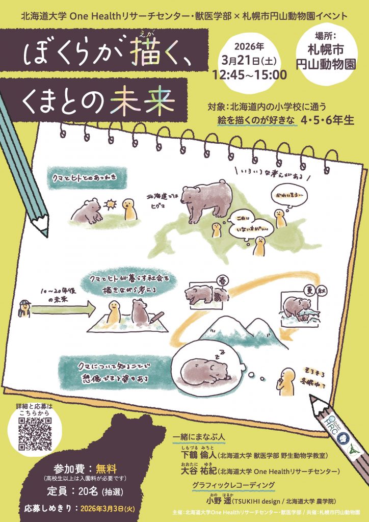 2026年3月21日(土)、One Healthリサーチセンターと獣医学部は、円山動物園と共同でヒグマとの未来を考える小学生向けイベントを開催します。